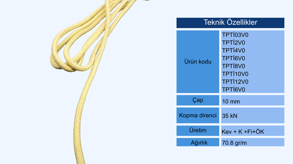 Hava araçlarını yere bağlayan iplerin metre başı ağırlıkları hava aracının uçuş dinamikleri ve faydalı yük kapasitesi belirleyen en önemli etkenlerdendir. Kendi ar-ge süreçlerimizde üretilen sağlam ipler için hem hafifleştirme hem de sağlamlaştırma süreçleri birlikte yönetilerek, ürünü yere bağlarken daha hafif bir yapıyla daha yüksek kopma değerlerine ulaşılarak ürün ailesi oluşturulmuştur. İp çapları 0,4 mm den başlayarak 12mm ye kadar yükseltilebilen, kopma değerleri 35 kN değerine kadar iyileştirilmiş ürün ailesidir.