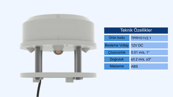 Yeryüzünde sabit veya stabil hava araçları için rüzgar yönü ve rüzgar hızı verisini dijitalleştirerek STM 32 veri modeline uygun hale getirip kullanıma sunan sistem komplesidir. Sistem hem yön hem de hız verisini %0,2 hassasiyet sınıfında ölçerek veri transferi sağlamaktadır.